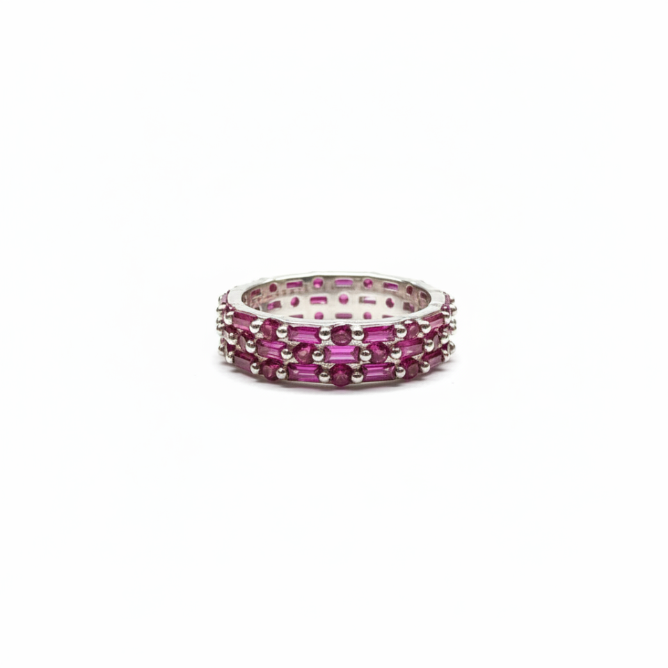 92.5 Silver Rhodium Plated Eternity Tennis Ruby Zirconia Rings | With Certificate of Purity & Hallmark Designed for refined elegance, this jewellery piece showcases a sophisticated Eternity Tennis Ruby Zirconia style crafted in premium 92.5, making it perfect for both everyday wear and special occasions.