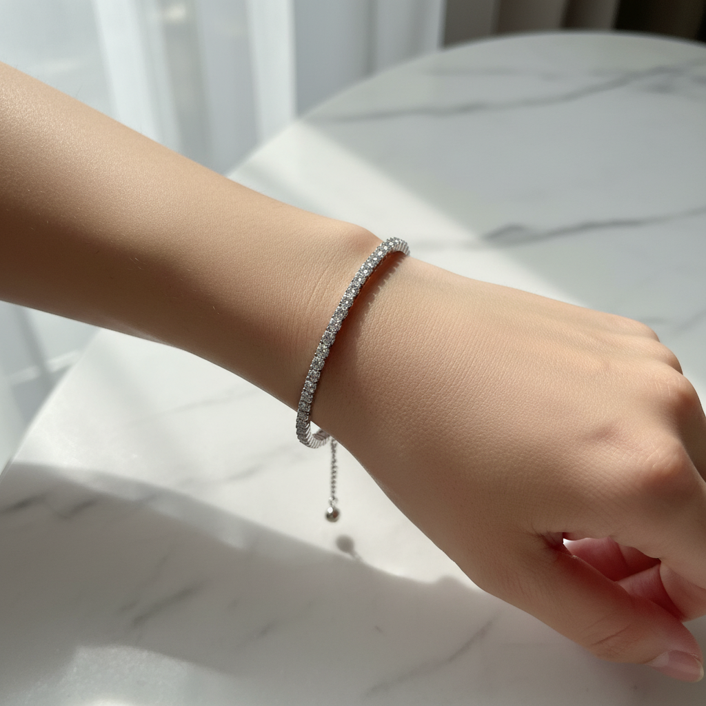 Perfect for both everyday wear and special occasions, this bracelet offers a seamless blend of durability, comfort, and style. The polished silver finish and elegant tennis setting make it a statement piece that pairs beautifully with casual ensembles as well as formal attire. Whether chosen as a personal indulgence or a thoughtful gift, the Signature Tennis Bracelet reflects elegance, authenticity, and enduring beauty, making it a cherished addition to any jewelry collection.