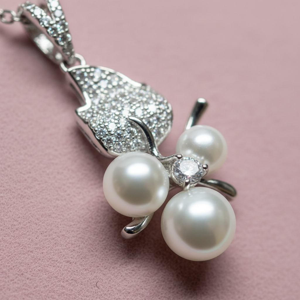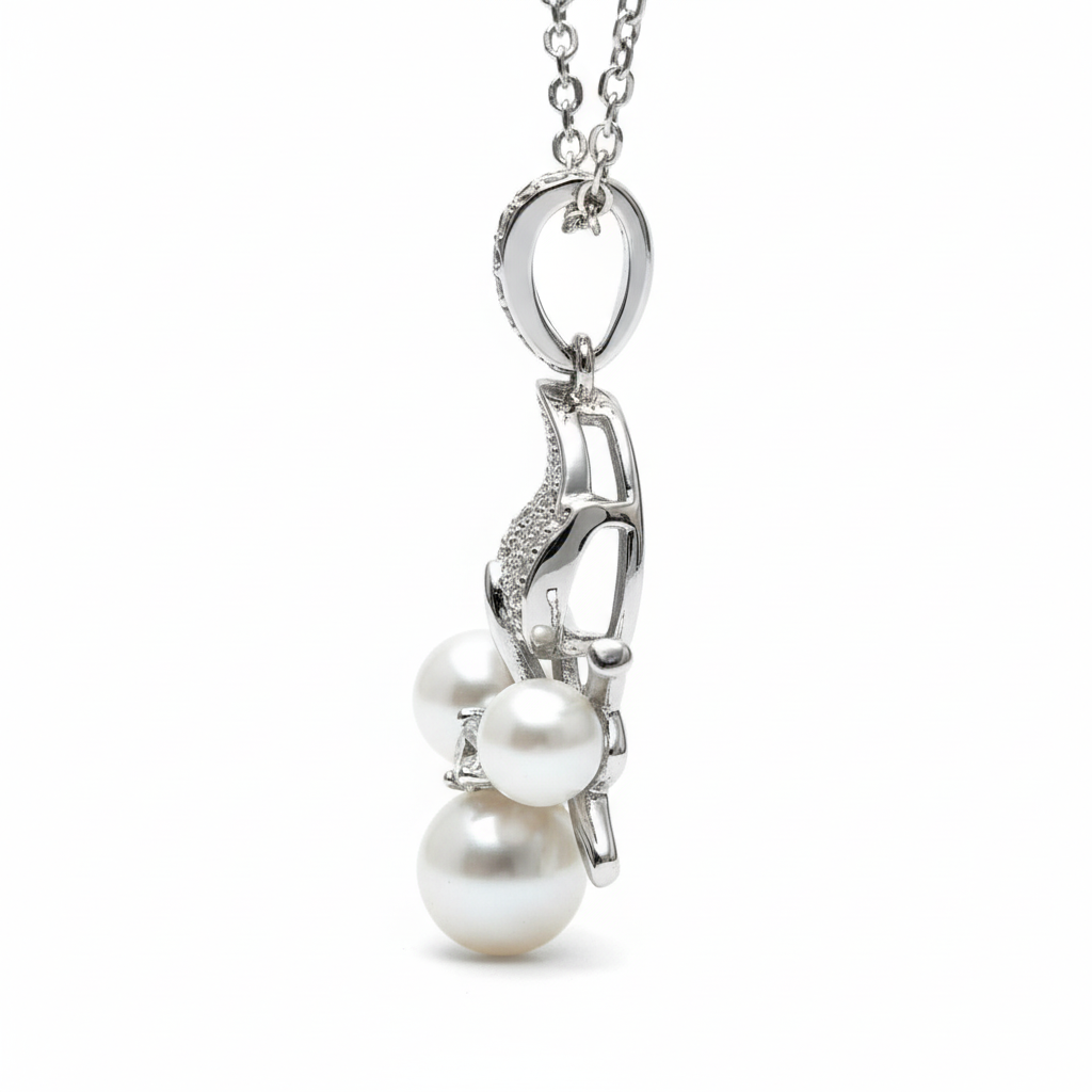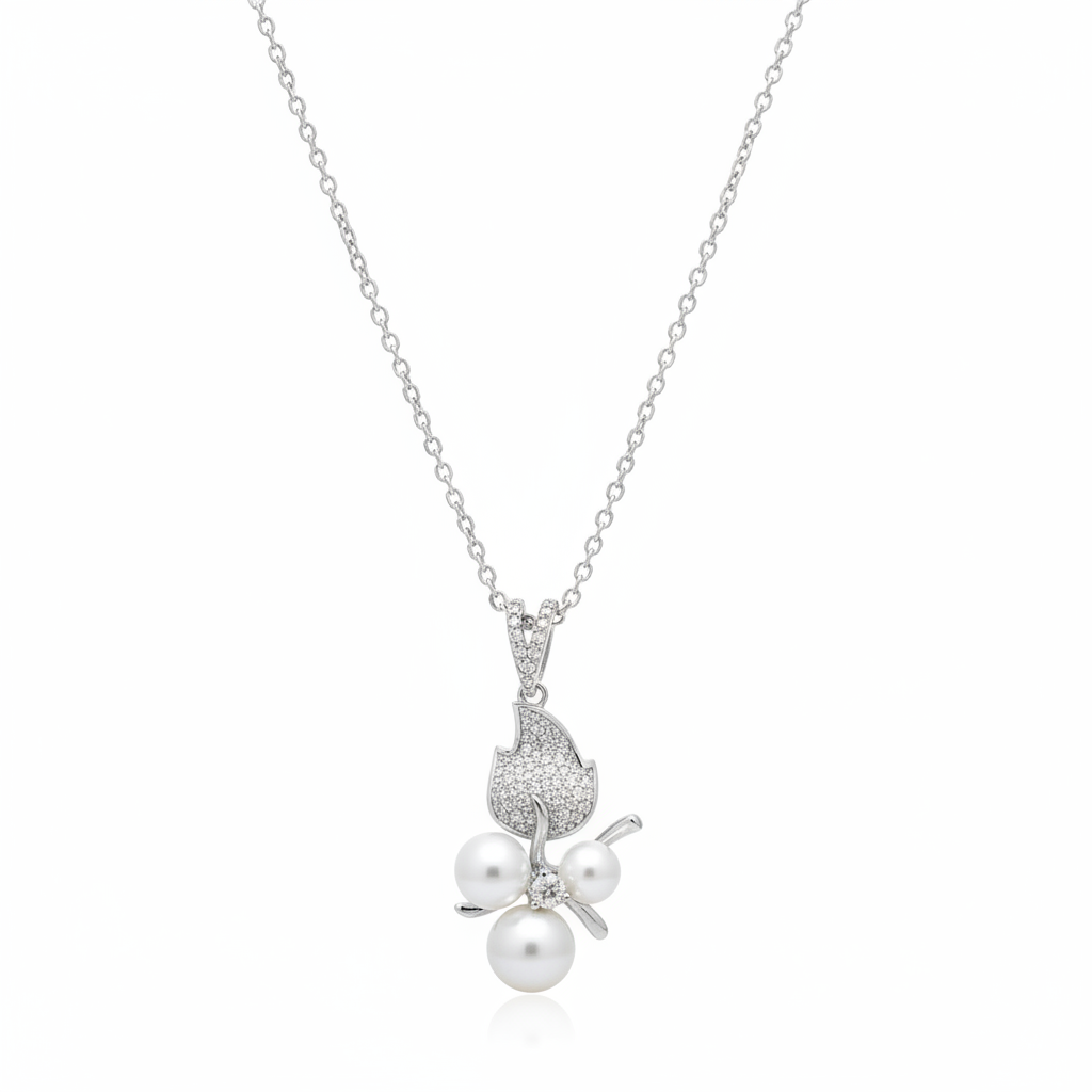 The 92.5 Silver Rhodium Plated Triple Pearl Necklace is a timeless piece designed to embody elegance and sophistication. Crafted from premium sterling silver and finished with a rhodium plating, it offers both durability and a radiant shine that resists tarnish. At its heart lies the graceful triple pearl design, each pearl carefully set to highlight its natural luster and create a refined aesthetic. This necklace is not only a statement of purity and craftsmanship but also comes with a certificate of authenticity and hallmark, ensuring its quality and value.