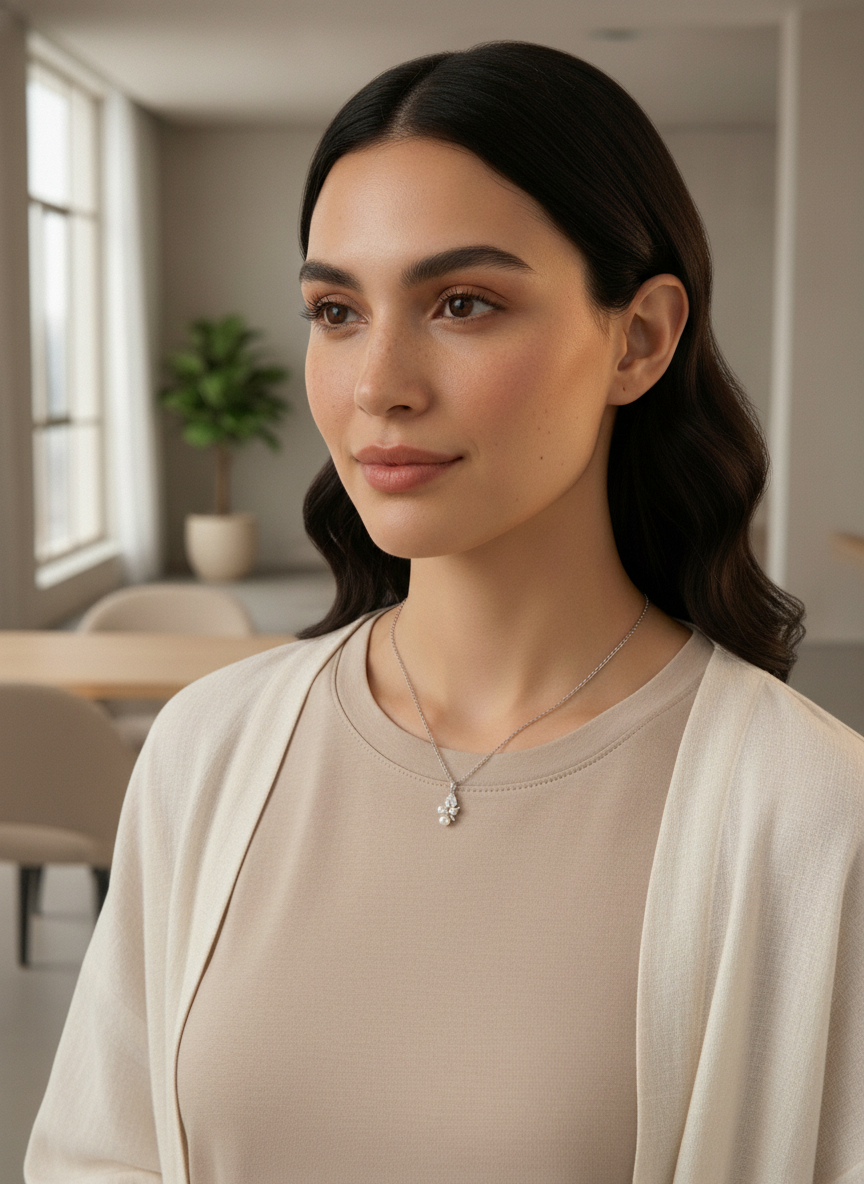 Perfectly versatile, the necklace transitions seamlessly from everyday wear to special occasions, complementing both casual and formal attire. Its lightweight construction ensures comfort throughout the day, while the classic silver finish adds a touch of understated luxury. Whether chosen as a thoughtful gift or as a personal indulgence, this piece captures the essence of timeless beauty and modern sophistication, making it a cherished addition to any jewelry collection.